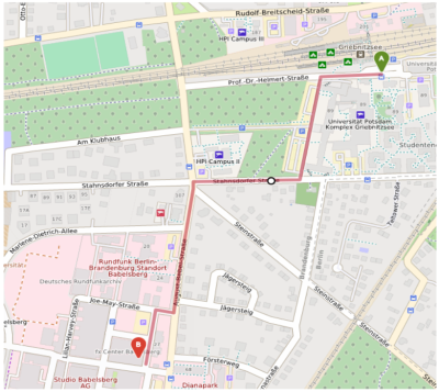 Skizze 2 - FußFußweg Bahnhof Medienstadt –– Studio Babelsberg fx.center (RE1, RE7)